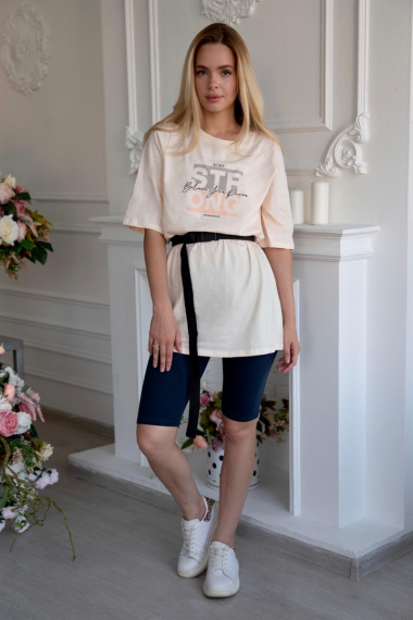 Фото товара 21544, женский костюм с велосипедками, футболкой и поясом